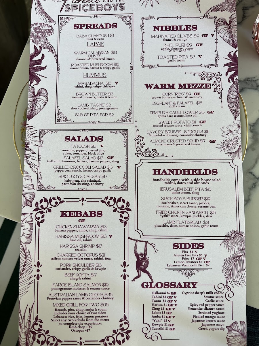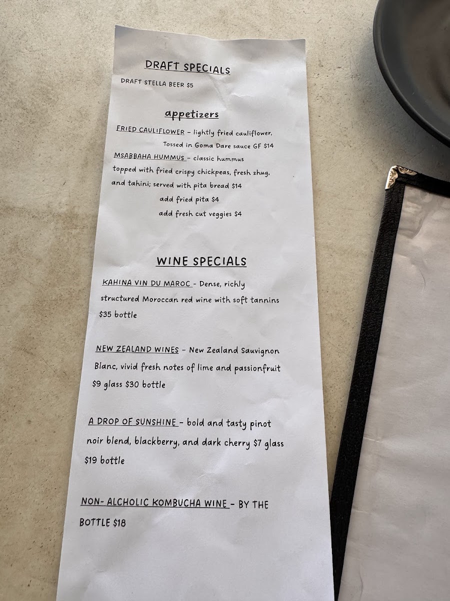 hummus, zhug, harissa, sumac onion, pistachio, mint